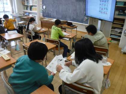 3月5日(火)4年生は外国語活動に取り組んでいました。一日のルーティーンをお互いに紹介し合っています。朝の過ごし方がそれぞれでおもしろいですね。
