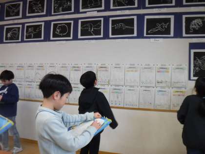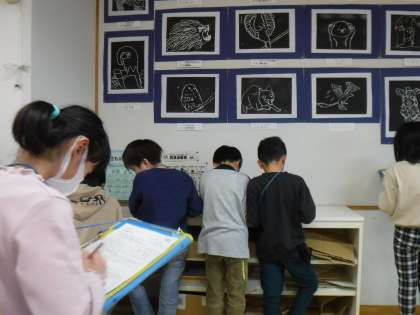 3月5日(火)3年生は、版画の鑑賞を行っていました。それぞれの作品のお気に入りをプリントに記入しています。一人一人それぞれが目の付け所ポイントをもっていていいですね。