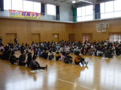 3月6日(水)今日の触れ合いタイムに、6年生が「サンキュー集会」を開いてくれました。先日の卒業を祝う会のお返しに、全校縦割り班で楽しいゲームをしたりプレゼントをしてくれたりしました。楽しい思い出をつくってくれる6年生に感謝です。