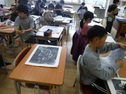 3月7日(木)3年生 版画が仕上がる