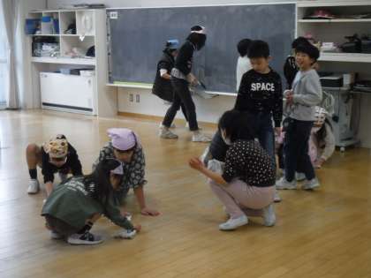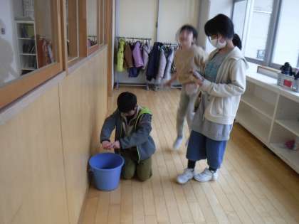 3月8日(金)3年生の隣のクラスも、掃除がもう始まっていました。何もない教室の床をぬらしたぞうきんできれいにこすっています。真剣に取り組んでいますね。