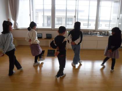 3月13日(水)1年生の準備の続きです。交流スペースでは、ダンスの練習中でした。
