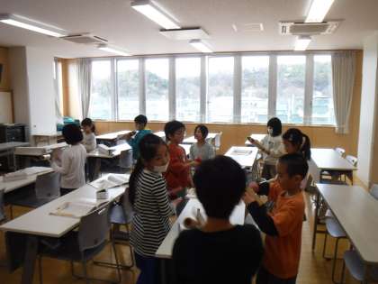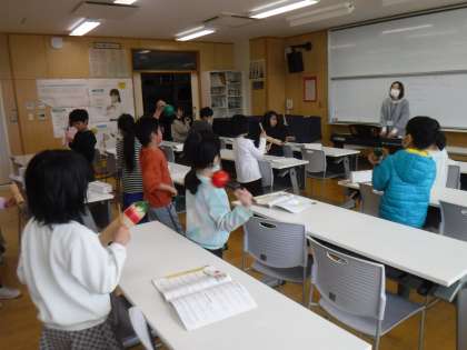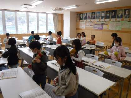 3月13日(水)2年生は、音楽室で学習をしていました。いろいろな楽器を使って、みんなで演奏を楽しんでいます。