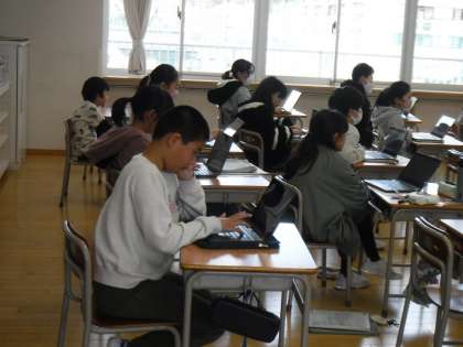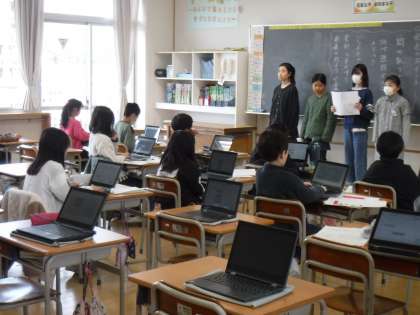 3月13日(水)4年生は、国語科の学習で、生活アンケートの結果からまとめたことを発表していました。感想は、クロムブックに残します。