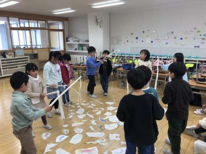 この日のためにたくさん準備を進めてきた子供たち。なぞなぞや魚釣りゲーム、折り紙の折り方紹介、ダンスなど、たくさんの出し物を通して、笑顔があふれていました。目当てとしていた「自分もみんなも楽しい」集会となりました。