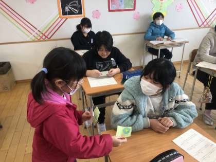 これまでたくさんお世話になった6年生に、感謝の気持ちを込めて自分たちが育てたアサガオの種とエールを贈りしました。「ありがとう」「大好きだよ」などの思いを伝えようと、大きな大きな声が6年生教室に響いていました。