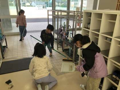 「次の1年生が気持ちよく使えるようにしよう!」という相手意識をもって、一生懸命に清掃に取り組んでいました。