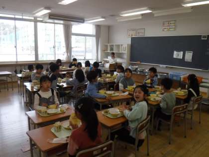 4月8日(月)今週が始まりました。今日は2〜6年生の給食初日でした。久しぶりの給食に、少し大きくなった子供たち。いろいろな物を食べて、大きくなってくださいね。