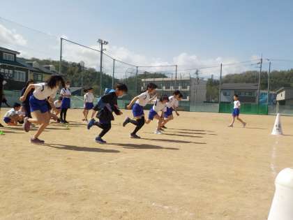 速く走るためにはどうしたらよいかを考えて学習しています。スタートの構えや目線に気を付けながら、練習を頑張っています。