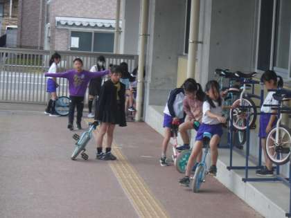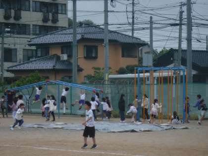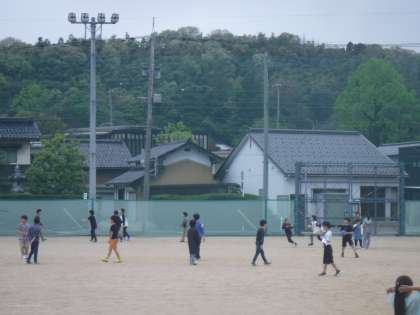 4月23日(火)今日は少し曇っていましたが、大休憩にはたくさんの子供たちがグラウンドに出て遊んでいます。一輪車をしている子や雲梯、ボール遊び、おにごっこ等、元気に遊んでいます。