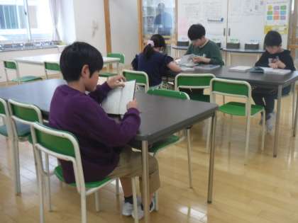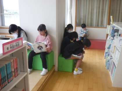4月24日(水)4年生は、図書室を利用して読書していました。友達と一緒に読んだり、一人集中して読みふけったりしています。