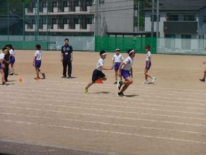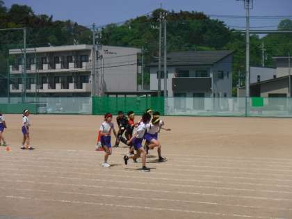 4月26日(金)6年生は体育の学習でリレーの練習を行っていました。ペアの相手のスピードに合わせ、スタートのタイミングを計ったり、「はい!」と声を出して渡したりする練習を繰り返していました。とても上手になっています。