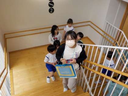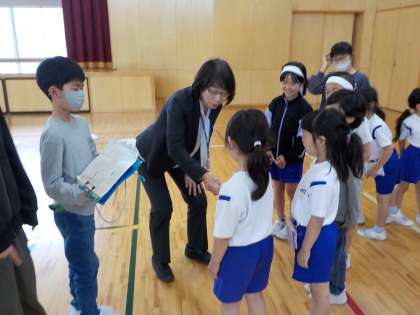 チャレンジタイムに、縦割り班での校内オリエンテーリングを行いました。新しい班のみんなで協力してチェックポイントを回り、新しく五福小学校に来られた先生方とのふれあいも楽しみました。
