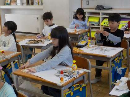 1年生「図画工作科 やぶいたかたちからうまれたよ」