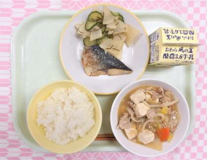 【献立】 ・ごはん ・牛乳 ・ふくらぎの西京焼き ・昆布和え ・肉豆腐
