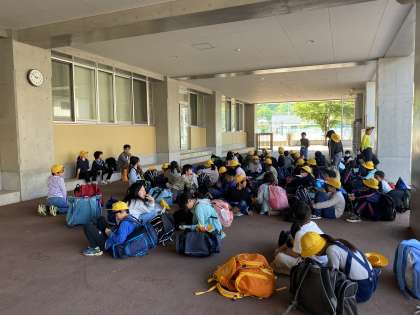 5年生は、宿泊学習から学校に帰ってきました。帰校式を行い、2日間の思い出や頑張りを振り返りました。
