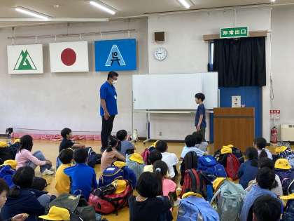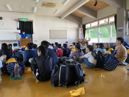 自然の家に到着しました。入所式を行い、オリエンテーションで、所での過ごし方を教えて頂きました。