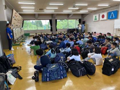 今日の活動である池遊びについて、所員の方から説明を受けました。