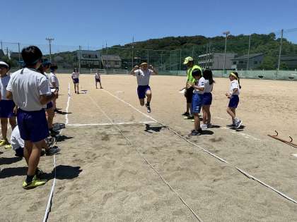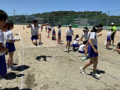 走り幅跳びの学習を行いました。助走距離、跳ぶときの目線、着地の姿勢など、それぞれポイントを意識しながら、記録を伸ばそうと練習に取り組みました。