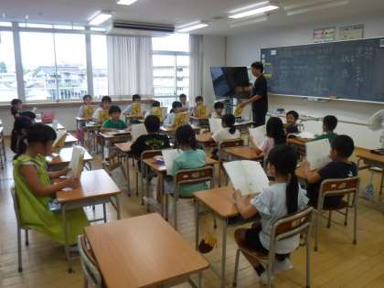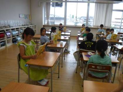 2年生は、国語の教科書に出ている教材文を音読していました。全員で読んだり、2部に分けて、おいかけっこ読みをしたりしながら、文章に親しんでいます。