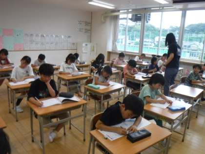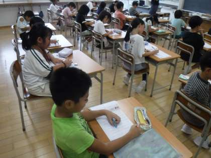 3年生は、新しい漢字を練習していました。書き順や字のバランス等に気を付けながら、丁寧に書いています。