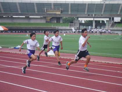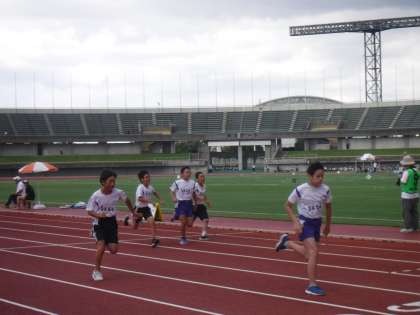 途中、すごい雷が光ったり鳴ったりしたため、競技は中止となりました。残念でしたが、今度学校で記録会を行います。