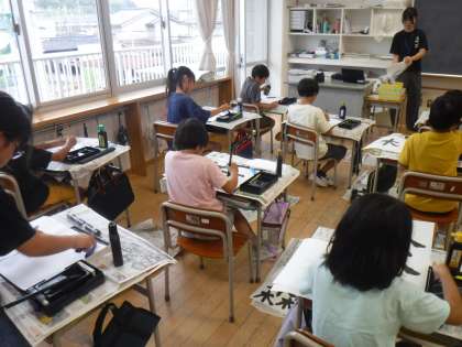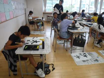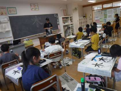 3年生は、書写の学習をしています。「木」という字を練習しています。どちらの払いもなかなか難しく、何度も書いてみています。
