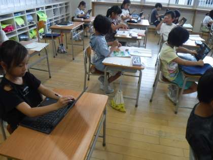 1年生は、プリント学習をしていました。終わった人から、クロムブックで、ひらがなやカタカナの練習をしています。すらすら使っているところがすごいね。