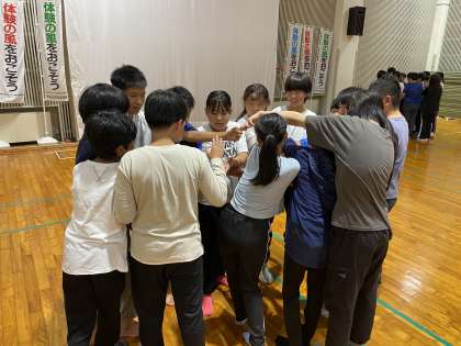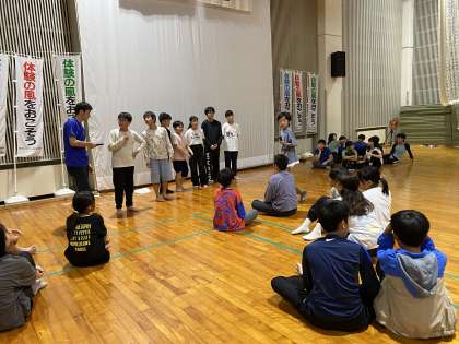 夕食後、入浴を済ませて、キャンドルサービスと出し物集会をしました。仲良く、楽しんでいます。