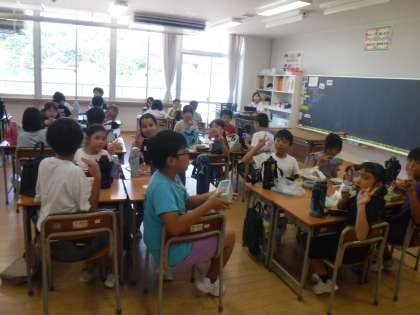 今日、4年生は呉羽小学校で行われる「区域連合音楽会」に出場します。早めにお家の方が作ってくださったお弁当でエネルギーチャージし、バスに乗って出かけました。