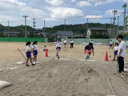 50m走、走り幅跳び、ソフトボール投げの3種競技の練習に励みました。1学期の記録を伸ばそうと、一人一人が目当てをもち、一生懸命に取り組んでいました。
