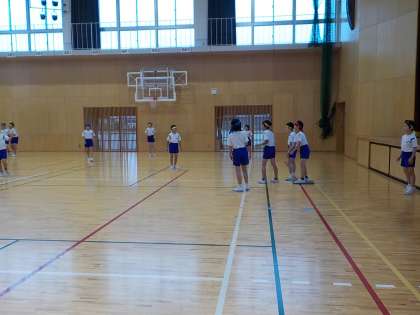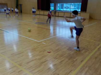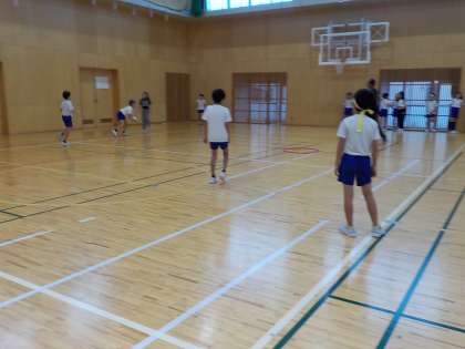 体育科の学習で、キックベースボールをしています。「ナイス!」「大丈夫大丈夫!」など、前向きな声が飛び交い、いい汗を流しています。だんだんとルールも分かってきたようです。