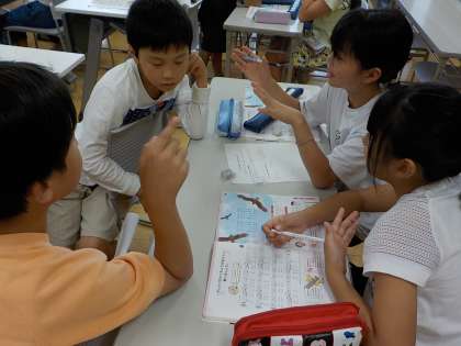 「せんりつのとくちょうを感じ取ろう」の学習で、グループで「とんび」の歌い方を工夫しました。曲から感じたイメージに合わせて、グループの友達と話し合いながら、強弱や歌い方を変えていました。