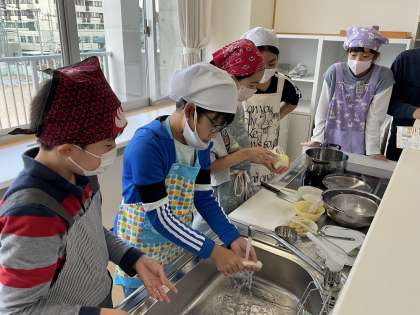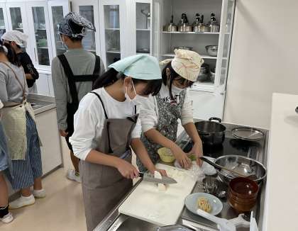 家庭科の調理実習でみそしるをつくりました。1学期の調理実習の経験を生かし、自分たちの力で手際よく調理を進め、グループの友達と協力して準備・後片付けを行いました。