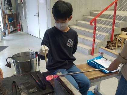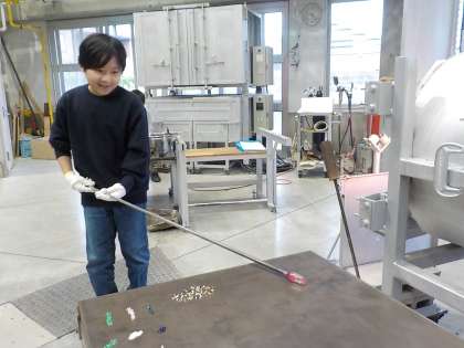 18日、19日にガラス工房でペーパーウェイトの卒業制作を行いました。