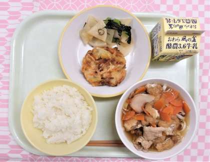 【献立】 ・ごはん ・牛乳 ・かきあげ ・やちゃら ・かやくうどん