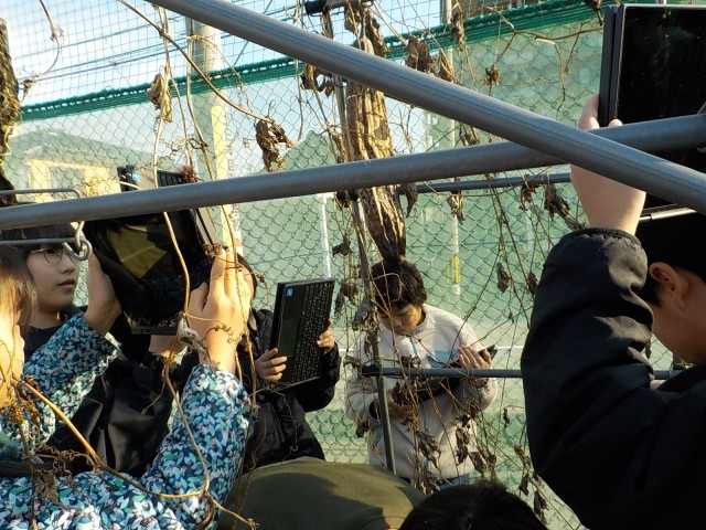 理科「寒くなると」の学習で、ヘチマとサクラの様子をクロムブックで撮影し、秋の頃の様子と比べました。ヘチマの色が変わっていることや、サクラの葉っぱがなくなっていること、新しく花を咲かせるための芽が出ていることなどに気付くことができました。