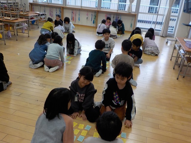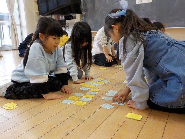百人一首の集いに向けて、札とりの練習をしています。いろいろな友達と何度も対戦し、一つでも多くの札を取ろうと真剣に取り組みました。来週の本番では、これまでに暗唱してきた成果を十分に発揮してほしいと思います。