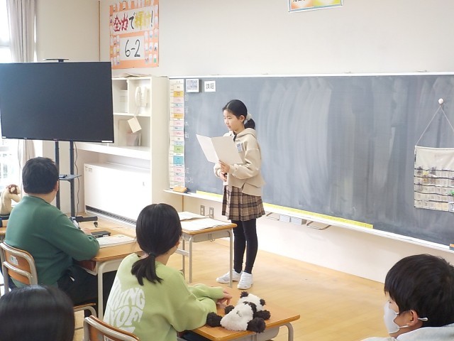 国語では、自分が大切にしている言葉について発表しています。理科では、リトマス紙を使って水溶液の性質を調べています。