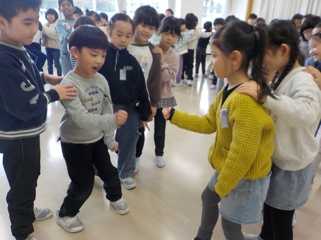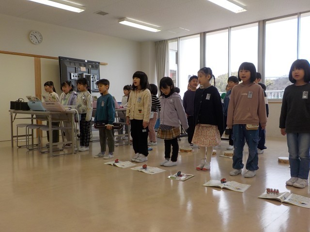 1年生最後の音楽は、「『こいぬのマーチ』発表会」を行いました。互いの楽器の音を聴きながら合奏したり、元気よく歌ったりするのを頑張っていました。そして、発表会の後は、『かもつれっしゃ』で盛り上がりました。