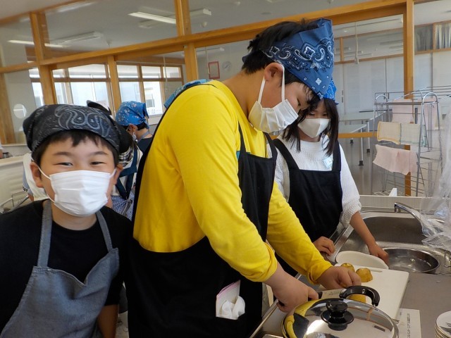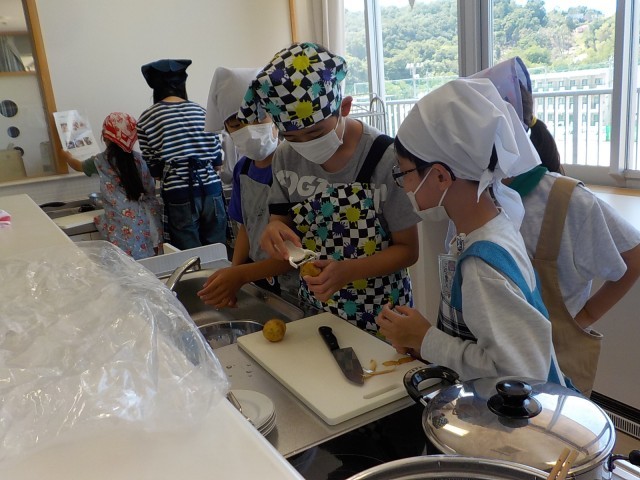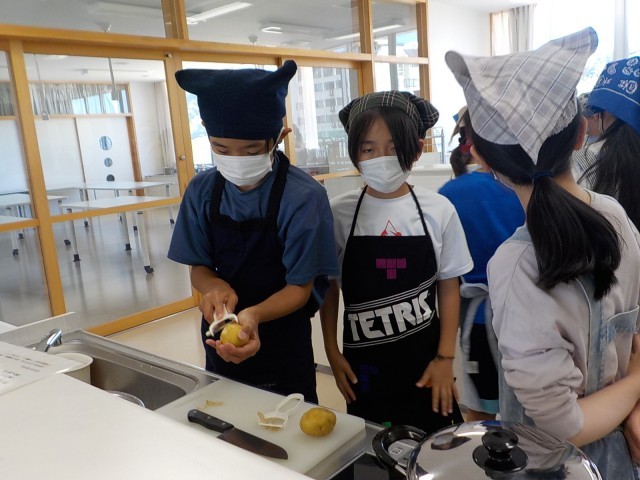 ピーラーを使うことの難しさも感じていました。ゆで加減を竹串で確認するのも楽しかったようです。