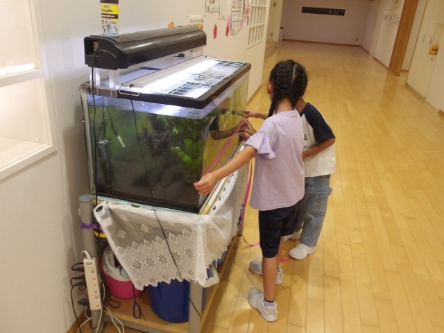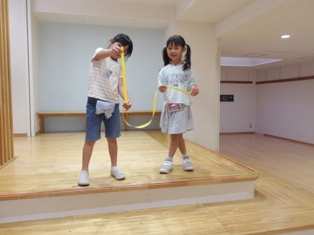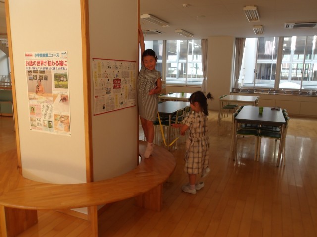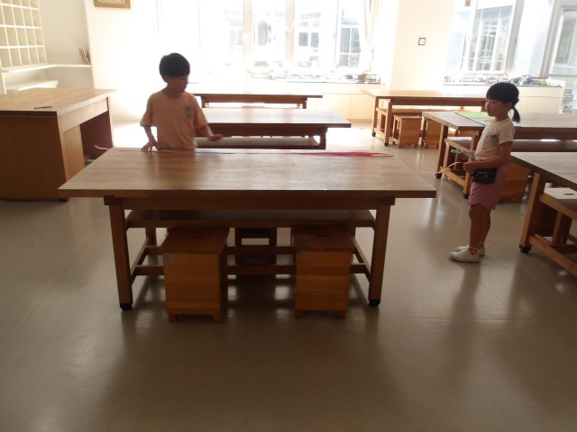 算数の学習で校内のいろいろなものの長さをはかりました。図書室のテーブルや水槽の横幅、エレベーターなどみんなで協力して楽しく長さ比べができました。