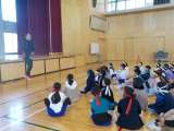自分たちの感じた呉羽丘陵の魅力や問題点、自分たちにできることなどを4年生に伝え...