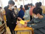 2年生は、6年生の卒業をお祝いするメダルを作りました。今日は、そのメダルを渡し...