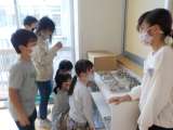 図画工作の時間に折り紙でかざりを作りました。「ハートの形にしたい。」「ここを切...