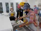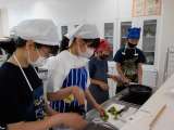家庭科の学習で、調理実習をしました。いためる調理に挑戦し、彩り炒めを作りました...