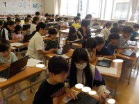初めてクロムブックを使い、アンケートに答えました。子供たちは、6年生さんに使い...