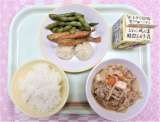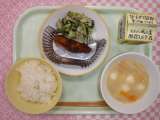 【今日の献立】 ・ご飯 ・牛乳 ・魚の竜田揚げ ・梅肉和え ・白玉汁 白玉のつ...