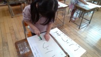 校内書初大会に向けての練習をしています。1年生は初めて硬筆墨を使って「こうま」...