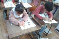 今日は書き初めの練習をしました。お手本をよく見ながら、真剣に書く姿が見られまし...
